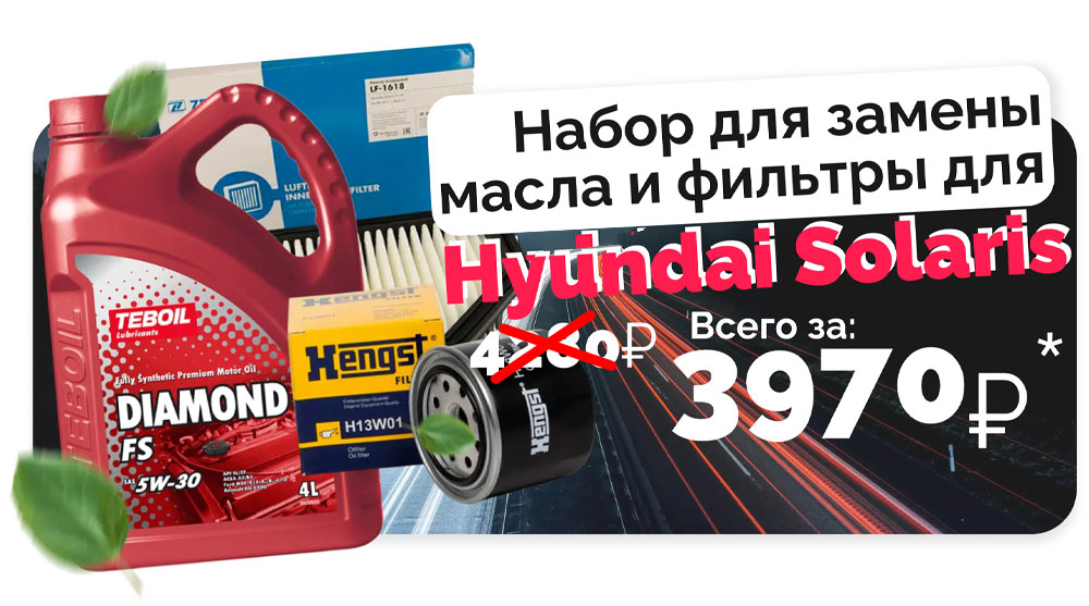 Выгодная цена на комплект Масло+Фильтры для Hyundai Solaris